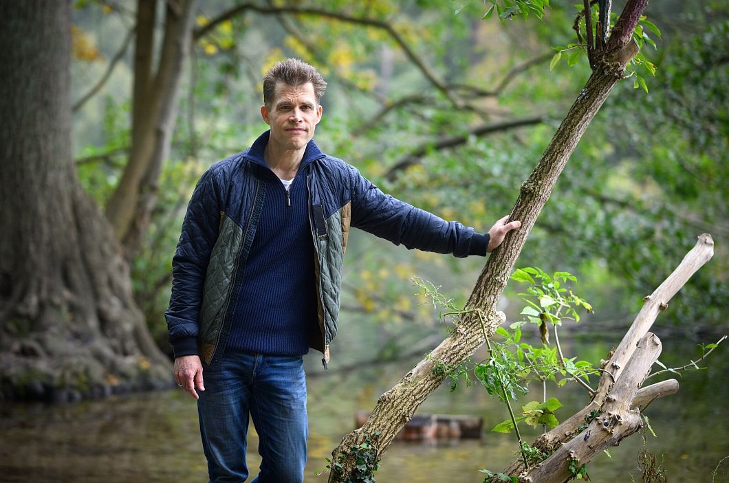Autor Bas Kast bei einem Spaziergang am Berliner Schlachtensee. | © Bernd von Jutrczenka/dpa