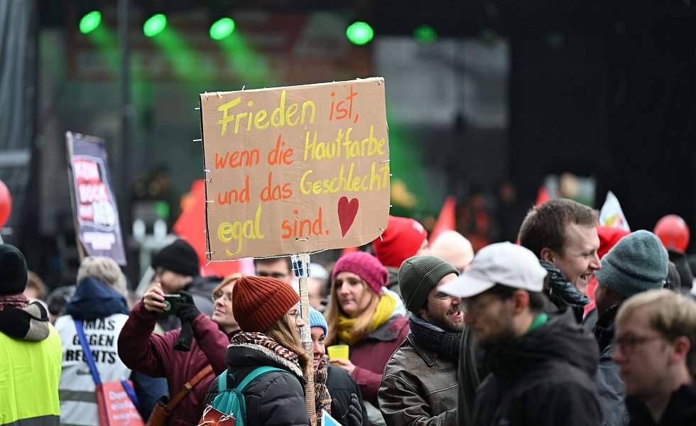 Protestierende skandierten „Alle zusammen. Gegen den Faschismus“ und „Stoppt die Brandstifter“ bei einer Kundgebung am Bahnhof. Auch an anderen Orten in der Stadt versammelten sie sich. Die voraussichtlich größte Demo startete nahe der Innenstadt. Der Deutsche Gewerkschaftsbund (DGB) hatte sie mit laut Polizei rund 30.000 erwarteten Teilnehmern angemeldet. Demonstranten kamen mit Schildern wie „Wir sind mehr“, „Wir sind euer böses Gewissen“ oder „Gießen für eine bunte Zukunft“. Die Kundgebung begann mit Redebeiträgen und einem Aufruf, alles möge friedlich bleiben.