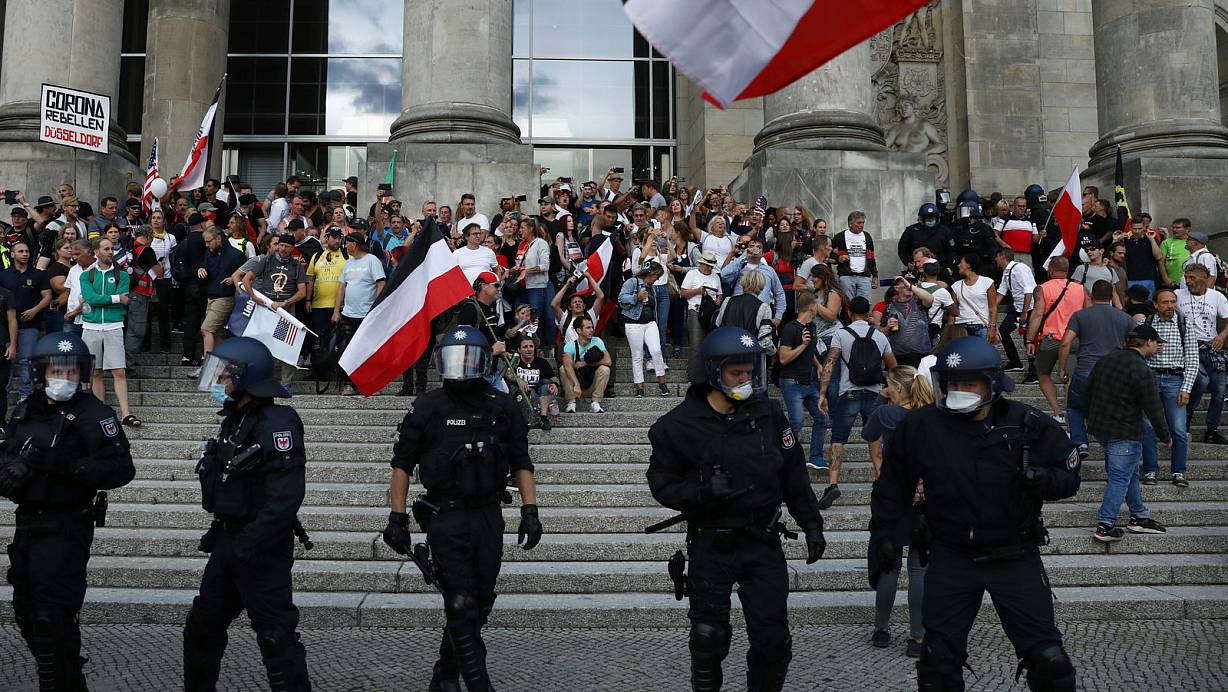 Den Tag über hatten in Berlin nach Polizeiangaben bis zu 38.000 Menschen an den Demonstrationen gegen Corona-Schutzmaßnahmen teilgenommen. Eine Großkundgebung wurde bereits am Mittag wegen Verstößen gegen die Abstandsregeln aufgelöst. Vor der russischen Botschaft in Berlin warfen Demonstranten mit mit Flaschen und Steinen auf Polizisten. Berlins Innensenator Andreas Geisel (SPD) meldete am Abend insgesamt rund 300 Festnahmen.