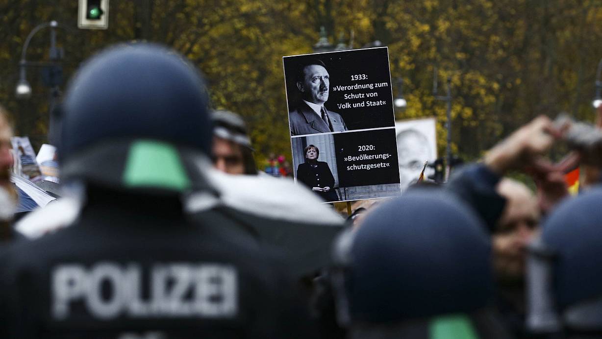 Polizeibeamte beobachten die Demonstration in Berlin. | © picture alliance / AA