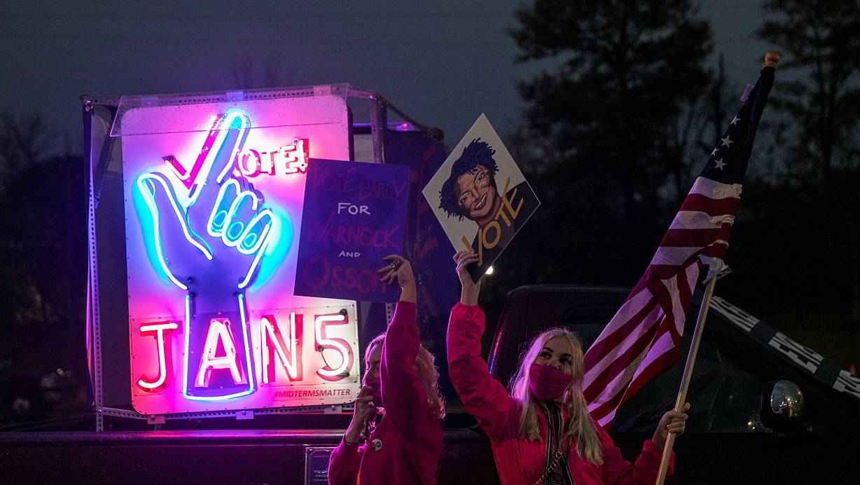Unterstützer des demokratischen Kandidaten Jon Ossoff rufen zur Wahl auf. | © Reuters/Mike Segar