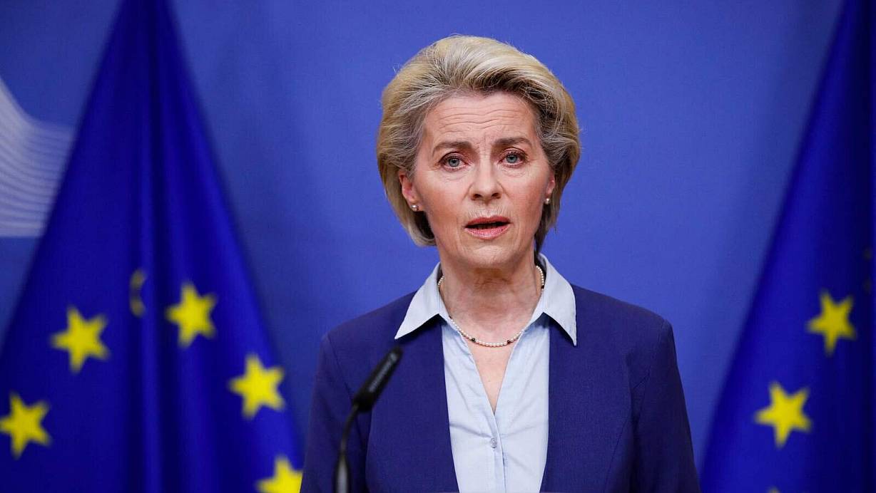 Die Präsidentin der Europäischen Kommission, Ursula von der Leyen, spricht nach dem Tredden der Mitgliedsstaaten. | © AFP