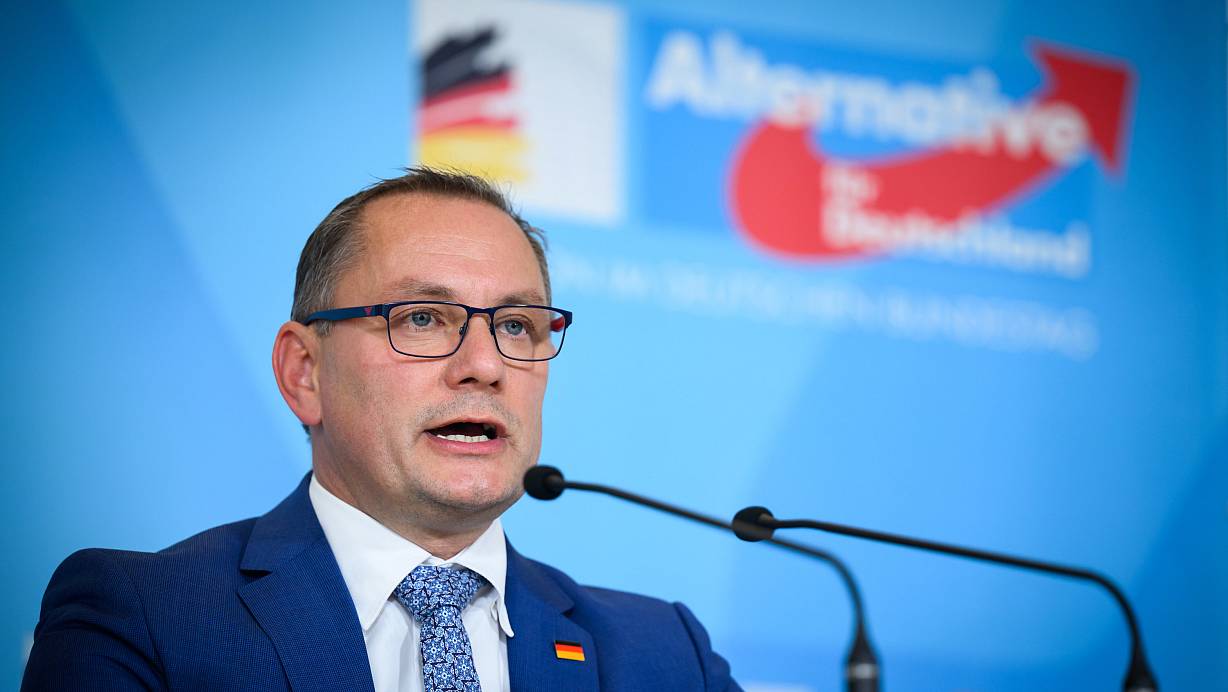 Tino Chrupalla, Vorsitzender der AfD-Bundestagsfraktion, versuchte die Aufregung um die zwei Parteikollegen abzumoderieren. | © Bernd von Jutrczenka