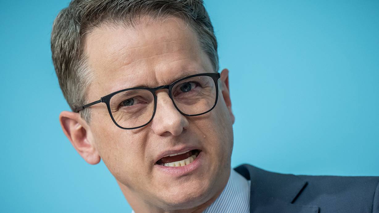 CDU-Generalsekretär Carsten Linnemann spricht auf einer Pressekonferenz zum Entwurf für ein neues Grundsatzprogramm der Partei. | © dpa