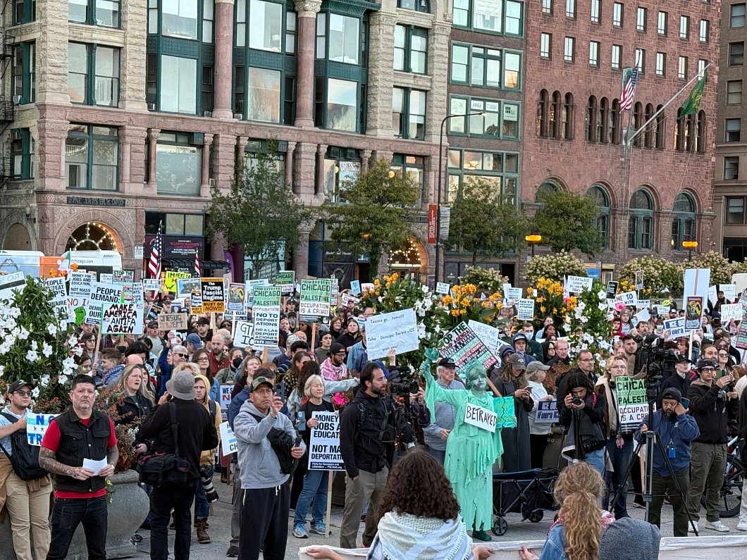 In der Millionenmetropole Chicago protestieren seit Wochen Menschen gegen Razzien von ICE. «Kein Trump, kein ICE, keine Soldaten», schallten am Mittwochabend Sprechchöre durch die Innenstadt - auf Spanisch riefe Demonstranten zudem: «Raus mit ICE».