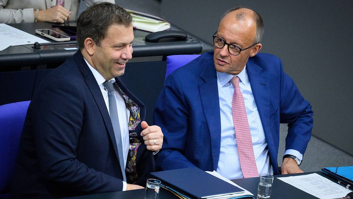 Am Dienstag Klingbeil, am Mittwoch Merz: Vizekanzler und Kanzler reden in der Haushaltswoche im Bundestag. | © Bernd von Jutrczenka/dpa