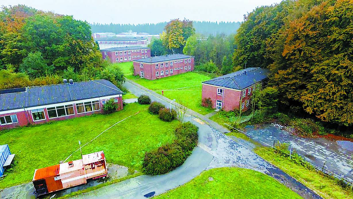 Bietet ab Jahresende Platz für bis zu 1.000 Menschen: Das "Kwartier Kortemarck" im NATO-Lager Stöckerbusch im Haarener Wald. Die alten Blocks der US-Streitkäfte und deren Shops (PX) werden abgerissen. Im Vordergrund sieht man Container für die Heißausbildung der Feuerwehr, im Hintergrund die JVA Büren. | © Marc Köppelmann
