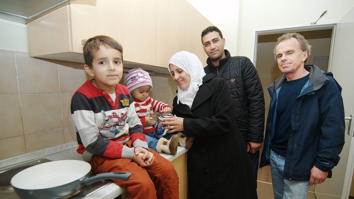 "Es ist wichtig, dass sie sich untereinander verständigen können", sagt Rolf Linnemann. Der Mitarbeiter des Sozialamts braucht selbst einen Dolmetscher. Mohannad Sheikha ist Sozialarbeiter bei der Arbeiterwohlfahrt (AWO) und kam vor einigen Jahren aus Jordanien nach Deutschland. Durch seine Sprachkenntnis ist Sheikha jetzt für die Arbeit im Wohnquartier Zedernstraße prädestiniert. Mit vier Sozialarbeiterstellen kümmert sich die AWO um die Bedürfnisse der Flüchtlinge, aber auch um die der Nachbarn. Ramona Ruiz Diaz wohnt direkt gegenüber der neuen Flüchtlingsunterkünfte. "Ich finde es gut, dass die Menschen hier untergebracht werden und sehe das gelassen", sagt die gebürtige Spanierin. Sie selbst sei mit ihren Eltern 1965 nach Deutschland gekommen, weil ihr Vater zu Hause keine Arbeit mehr fand.