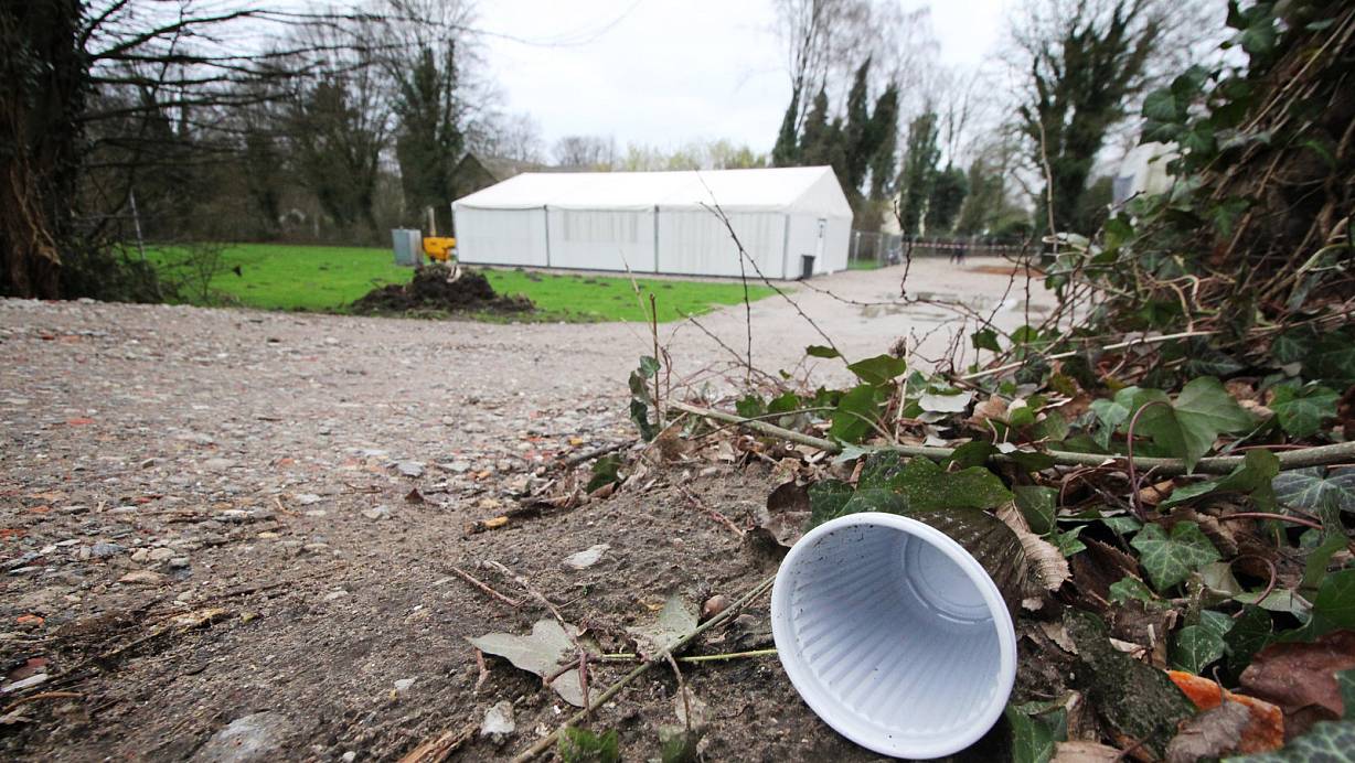 Speisung: Die in der Halle Nord untergerbachten Flüchtlinge erhalten ihre Mahlzeiten in einem Zelt. | © Marten Siegmann
