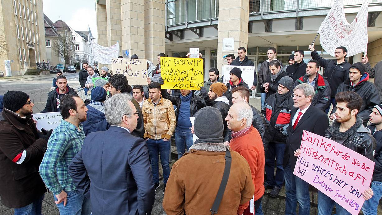 Flüchtlinge demonstrieren vor dem Kreishaus