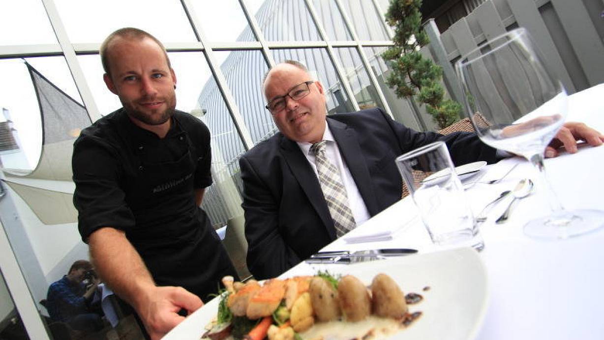 Bielefeld. Mit gekonnten Handgriffen richtet Sebastian Lehmann die frische Maispoularde auf dem Teller an. Das Gemüse sieht knackig und zum Anbeißen aus. Dazu die aufgeschäumte Weißweinsoße – lecker! Auch Martin Roßmann, Direktor des Hotels Bielefelder Hof, lächelt zufrieden. So stellen sich die beiden Experten moderne Küche aus Westfalen vor.