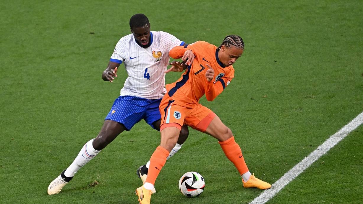 Doch waren es nicht die Franzosen, die für die erste starke Szene der Partie sorgten. Nach nur 57 Sekunden wären beinahe die Niederländer in Führung gegangen und das durch eine Bundesliga-Co-Produktion. Xavi Simons von RB Leipzig spielte auf seinem Heim-Terrain den Ball auf Jeremie Frimpong. Der Angreifer von Double-Gewinner Bayer Leverkusen - neu in der Elftal im Vergleich zum 2:1 gegen Polen - scheiterte aber an Frankreichs Keeper Mike Maignan.