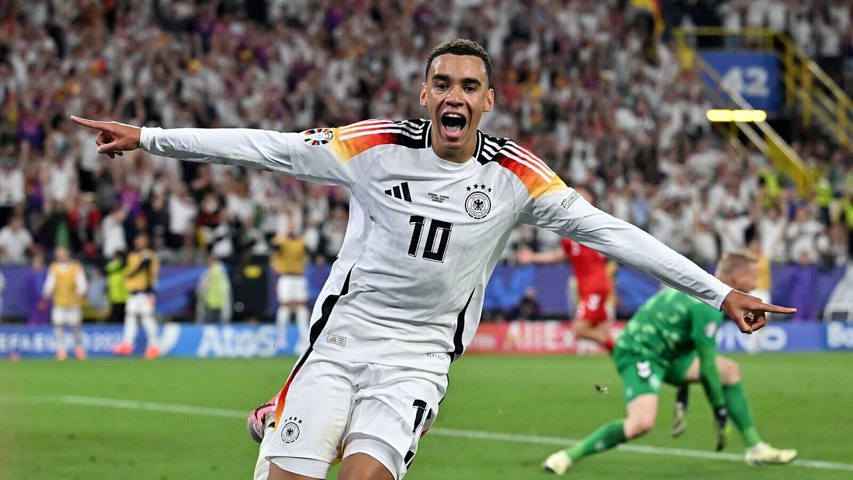 Die deutschen Nationalspieler ließen sich auf der Ehrenrunde durch das Dortmunder Stadion feiern, aus den Boxen dröhnte «Major Tom». Im Achtelfinale gegen Dänemark hat sich die DFB-Auswahl von Bundestrainer Julian Nagelsmann weder von Blitz, Donner und Starkregen noch von bangen Videominuten aufhalten lassen - an einem außergewöhnlichen Fußball-Abend mit umjubelten Toren von Kai Havertz und Jamal Musiala zog Deutschland durch ein 2:0 (0:0) gegen hartnäckige Dänen ins EM-Viertelfinale ein.