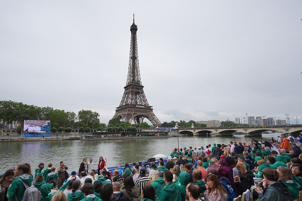 Das sollte die Stimmung aber nicht stören. Insgesamt 85 Boote standen für die 6.800 Athleten bei der Eröffnungsfeier zur Verfügung. Erstmals in der Geschichte der Spiele wurde die Zeremonie nicht in einem Stadion, sondern auf dem Wasser durchgeführt. Auf einer Länge von sechs Kilometern fuhren die Sportler von der Pont d'Austerlitz an zwölf Bühnenbildern mit rund 2.000 Künstlern vorbei bis zum Trocadéro am Eiffelturm. Los ging es mit einem Feuerwerk in den französischen Nationalfarben.