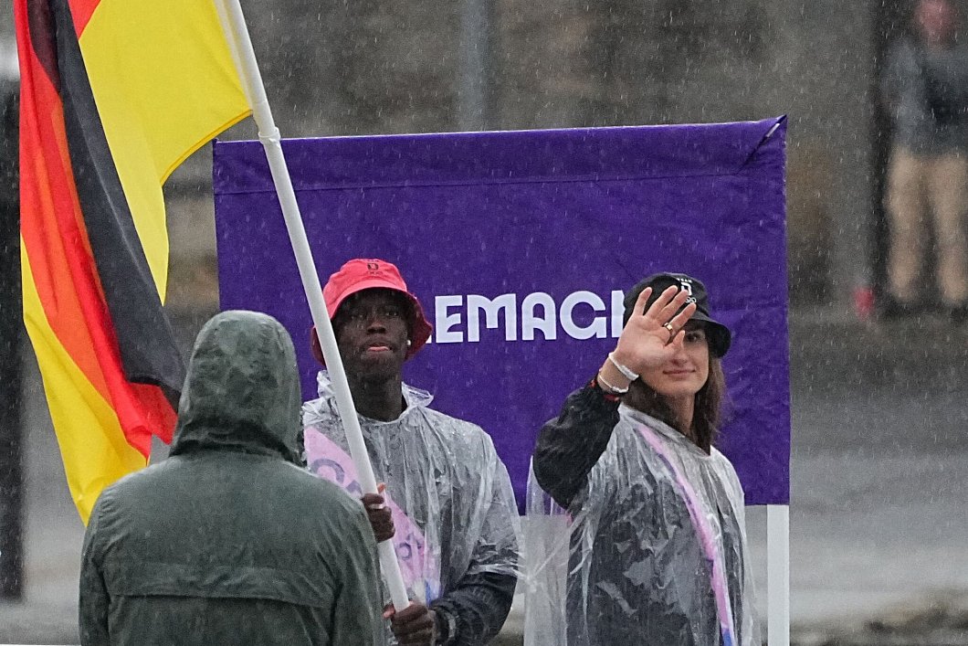 Die deutsche Mannschaft bestieg bereits das dritte Boot, zusammen mit Afghanistan, Südafrika, Albanien und Algerien. Rund 150 deutsche Athleten und 100 Trainer, Betreuer und Offizielle waren mit an Bord. «Es ist die größte Ehre, die man bekommen kann. Ich freue mich, dass ich mit Anna-Maria hier nun stehen und Deutschland repräsentieren kann», sagte bestens aufgelegter Fahnenträger Schröder, ausgestattet mit einem rosa Fischerhut.