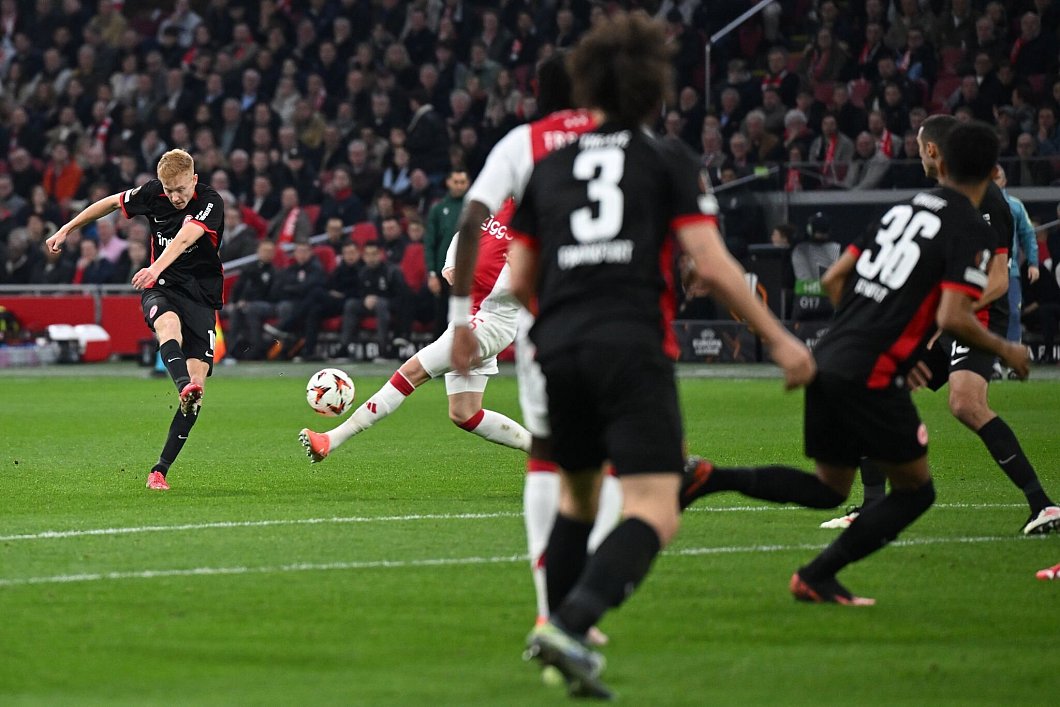 Danach sah es zunächst nicht aus. Ohne ihren Abwehrchef Robin Koch, der die Reise nach Amsterdam wegen einer Gehirnerschütterung nicht mit antreten konnte und von Nnamdi Collins in der Viererkette ersetzt wurde, gerieten die Hessen zu Beginn der Partie enorm unter Druck.