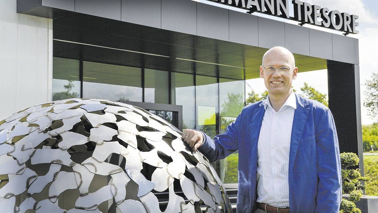 In die sechs runden handbreiten Vertiefungen lassen sich Zylinder stecken, auf denen selbstaufziehende Uhren befestigt werden können. Ein Mechanismus im Tresor dreht dann diese Zylinder, damit Zeitmesser immer aufgezogen bleiben. Das Geschäft mit solchen Edelsicherheitsschränken für Schmuck und Chronometer boomt. Aber auch schlichte Modelle sind gefragt wie nie zuvor: "Insgesamt ist unser Umsatz 2016 um 20 Prozent gestiegen", sagt Markus Hartmann, der als Vorstandsmitglied den Vertrieb leitet.