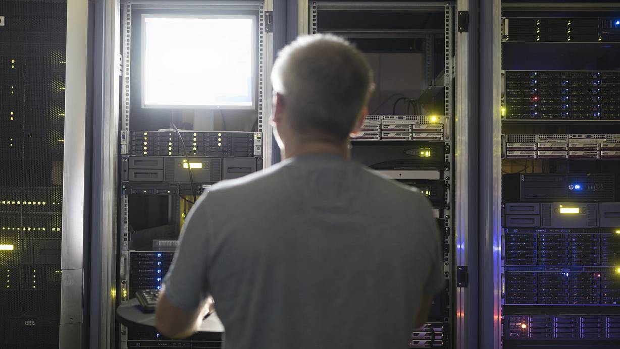 Symbolbild: Ein Informatiker kontrolliert einen Server. | © picture alliance/KEYSTONE