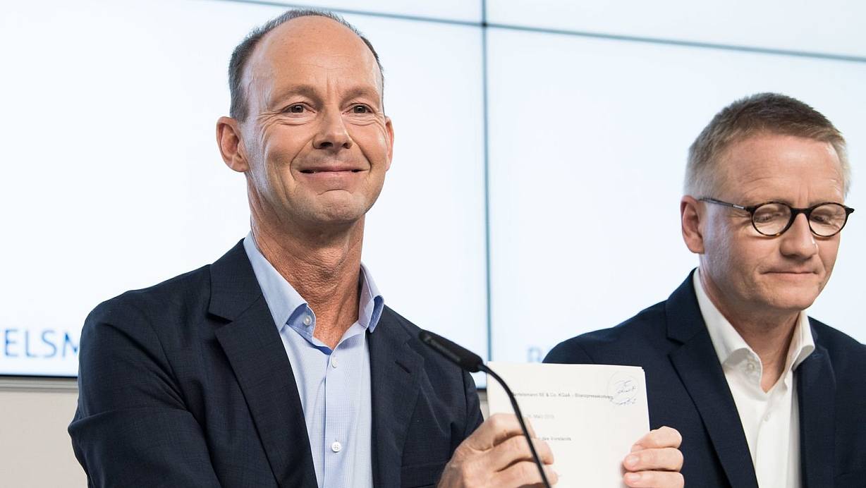 Mit 2019 zufrieden, aber unsicher über die Entwicklung im Corona-Jahr 2020: Bertelsmann-Chef Thomas Rabe (l.) und Finanvorstand Bernd Hirsch. | © picture alliance / SvenSimon