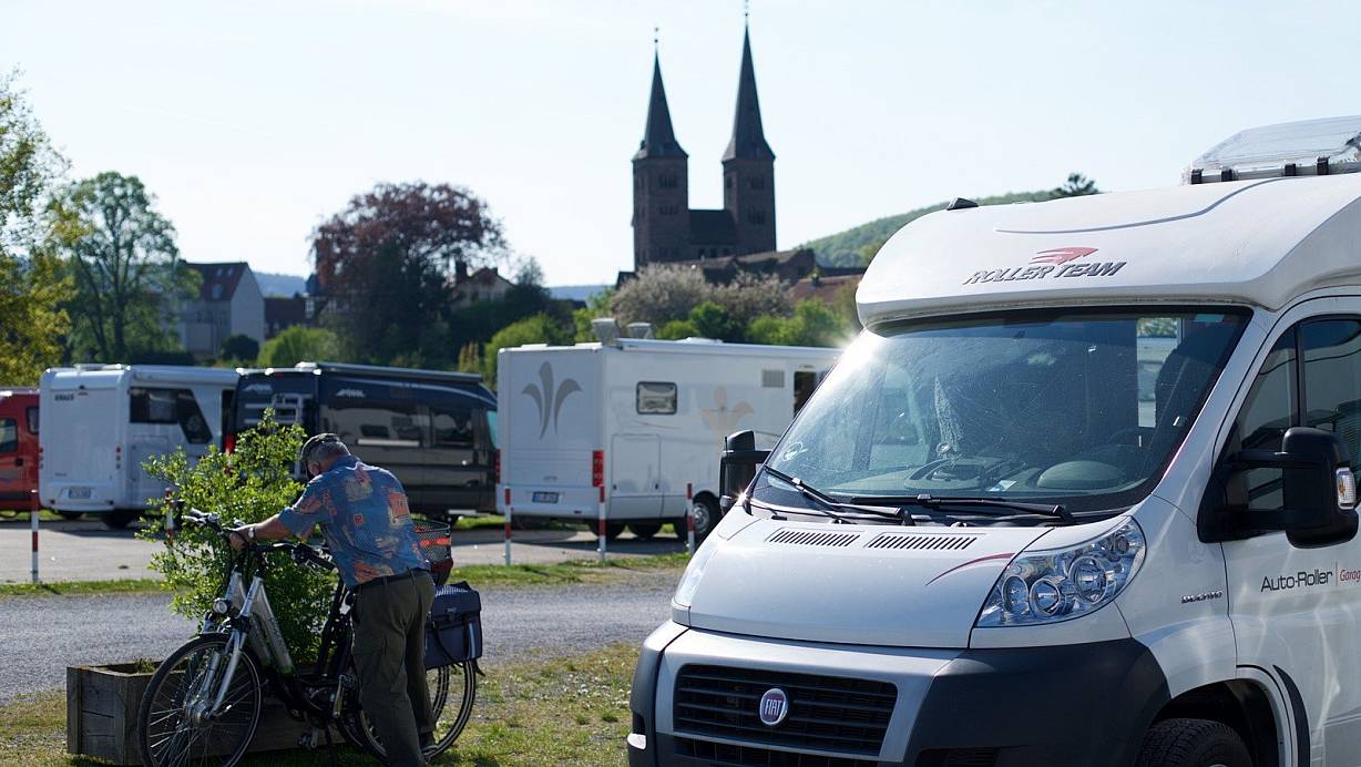 Die Kilianikirche in Sichtweite: Auf dem Camping- und Wohnmobilstellplatz „Wesercamping Höxter" ist Urlaub auf Rädern möglich. | © Wesercamping Höxter