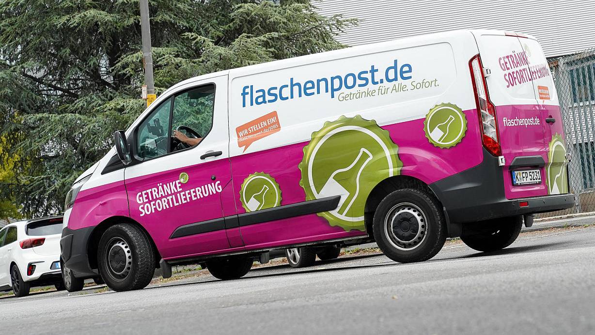 Ein Lieferwagen des Getränkelieferdienstes Flaschenpost: Nach der Übernahme gliedert die Oetker-Gruppe ihren eigenen Durstexpress in die Flaschenpost-Struktur ein.   | © picture alliance / Flashpic