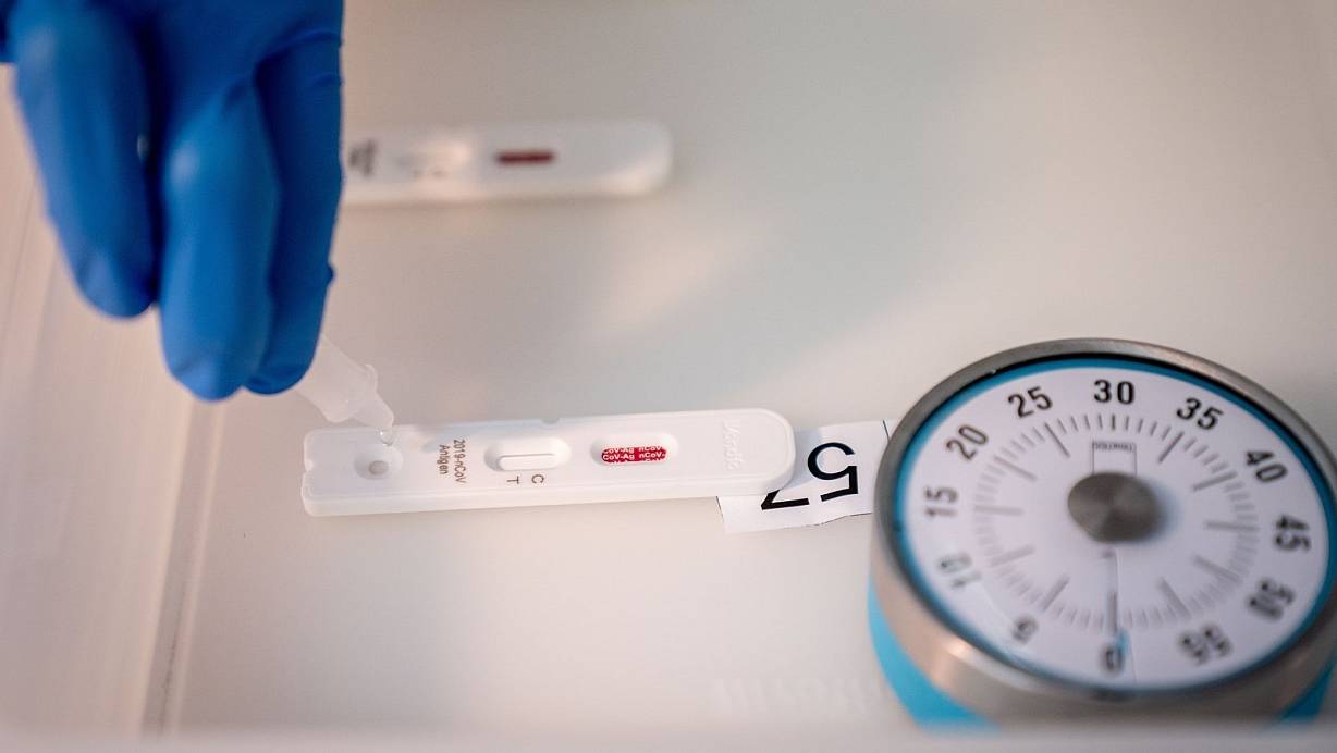 Corona-Schnelltest in eine Lösung auf die Antigen Testkasette. | © picture alliance/dpa | Kay Nietfeld