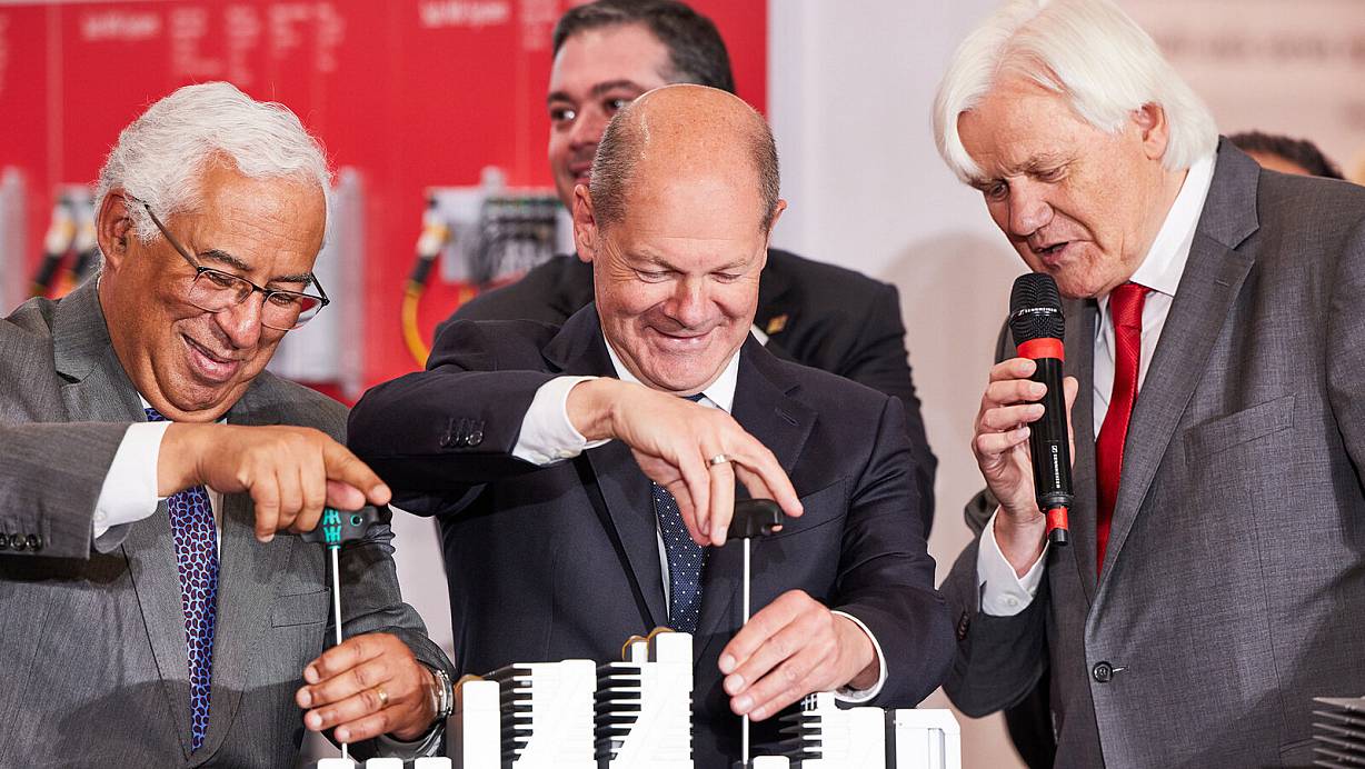 Hoher Besuch beim ostwestfälischen Technologieunternehmen Beckhoff: Firmengründer Hans Beckhoff (r.) begrüßte an seinem Messestand in Hannover Bundeskanzler Olaf Scholz und Portugals Premierminister Antonio Costa. | © Beckhoff