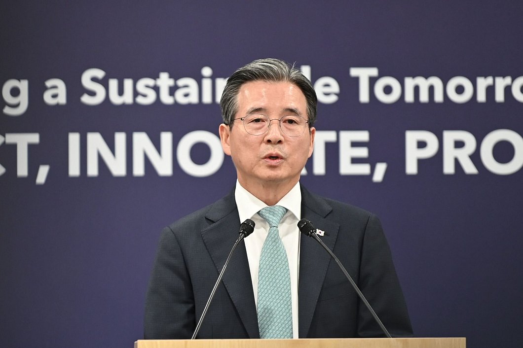 Kim Yong Bum, Leiter im Präsidentenstab für Politik, gibt Auskunft über die Details der Handelseinigung mit den USA. | © Johannes Neudecker/dpa