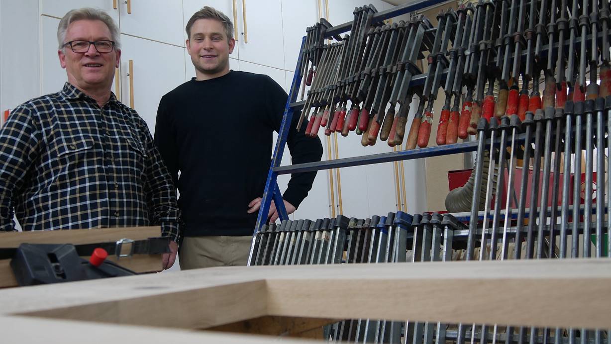 Vier Jahre suchte Thomas Wülker einen Nachfolger. Jetzt führt Johannes Steinbach die Tischlerei in Lage weiter. Warum die Nische Restaurierung trägt und worauf beide bei der Übergabe geachtet haben.