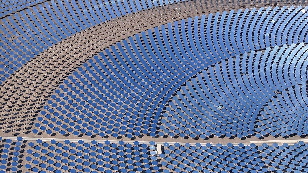 Ein riesiges Solarkraftwerk in der chinesischen Wüstenregion Xinjiang. Nach einer Studie der Unternehmensberatung BCG und des Weltwirtschaftsforums hat China dem Westen die technologische Führung in der Umwelttechnologie abgenommen (Archiv) | © Hu Huhu/Xinhua/dpa