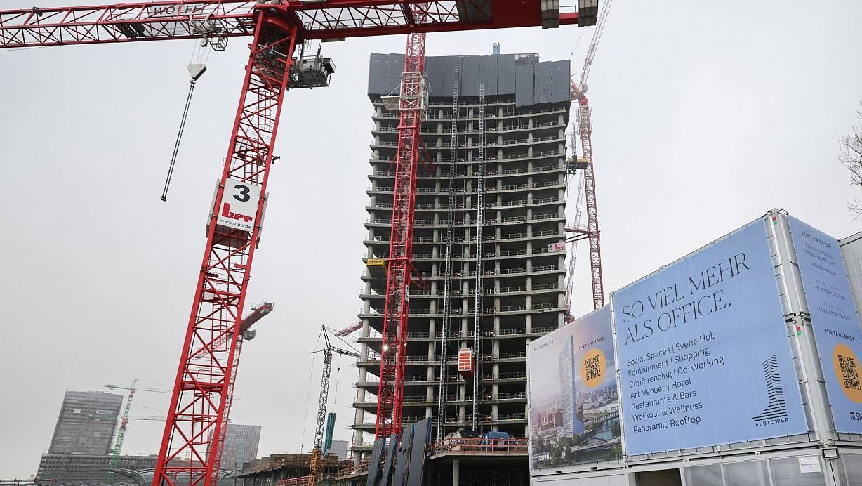 Seit Ende Oktober herrscht auf der Baustelle jedoch Stillstand. Bei 100 Metern Höhe hat das beauftragte Bauunternehmen die Arbeiten eingestellt, weil Rechnungen nicht bezahlt wurden. Das dritthöchste Gebäude Deutschlands, entworfen vom Londoner Stararchitekten David Chipperfield, soll einmal unter anderem Büros, Geschäfte, Galerien, Restaurants und eine Aussichtsplattform in der 55. Etage beherbergen.