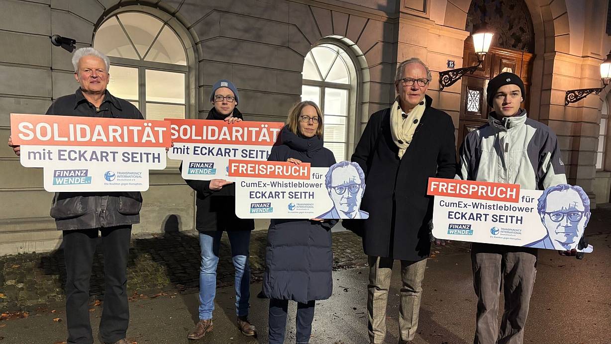 Vor dem Gerichtsgebäude in Zürich demonstrierte unter anderem die frühere Kölner Cum-Ex-Staatsanwältin Anne Brorhilker mit einem Plakat für den Freispruch von Seith. Als Seiths Verteidiger trat auch der frühere Justizminister von Nordrhein-Westfalen, Peter Biesenbach, auf. Er äußerte Unverständnis darüber, dass das Verfahren nicht eingestellt werde. Schließlich habe Seith dazu beigetragen, «das größte Finanzverbrechen der vergangenen Jahrzehnte» aufzuklären.