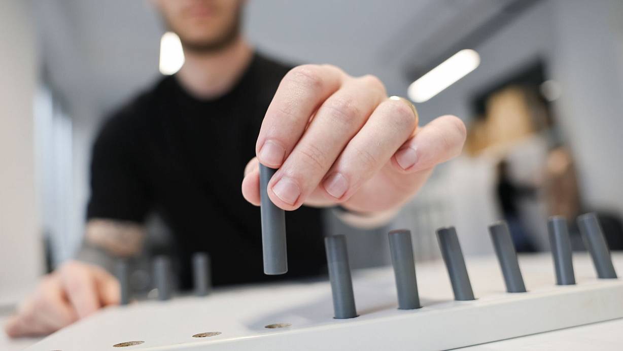 Im Labor der MSH Medical School Hamburg wird zum Thema Linkshändigkeit geforscht. Dabei wird die Hirnaktivität gemessen. - © Christian Charisius/dpa