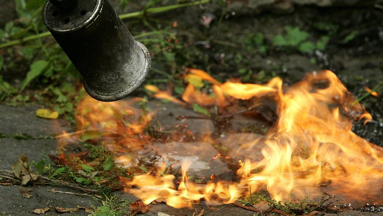 Brandgefährliche Gartenarbeit mit Gasbrennern