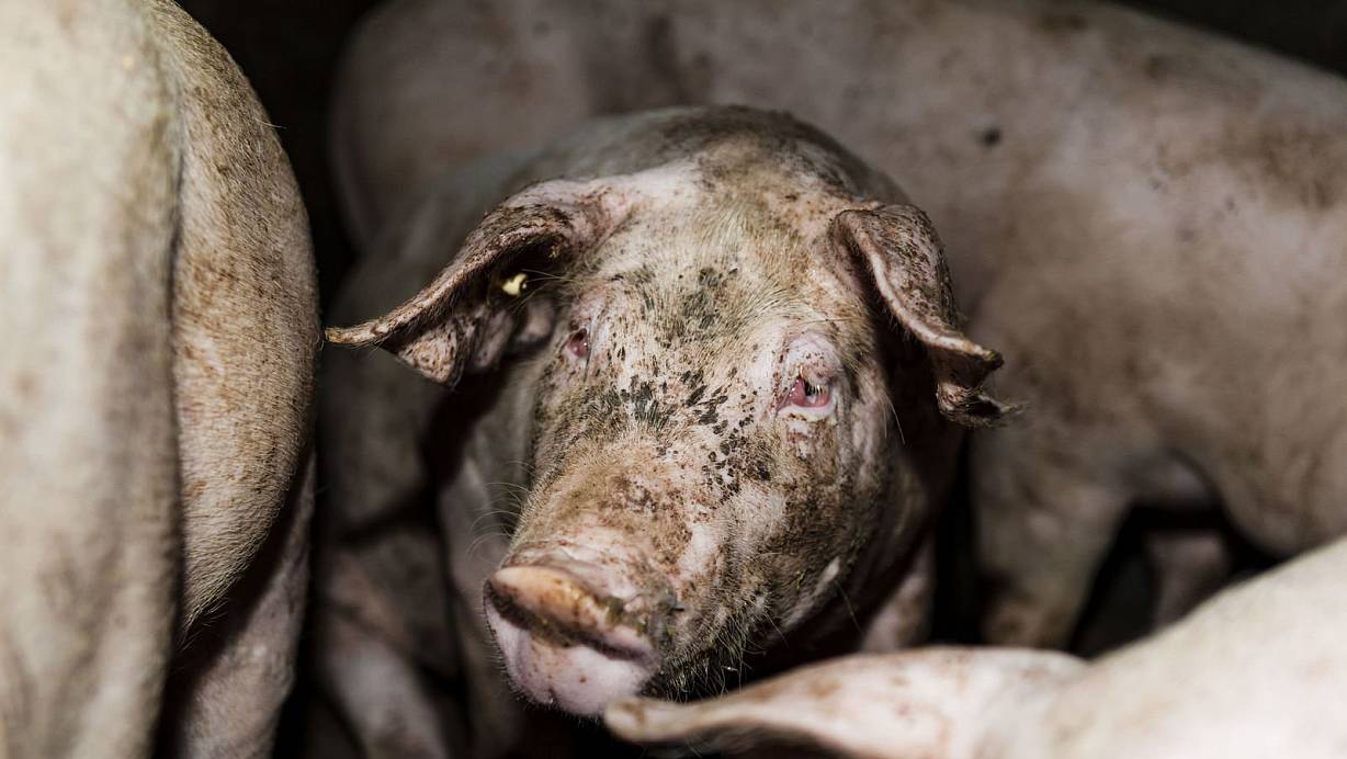 Entzündete Augen: Der Verein Tierretter hat uns dieses und noch weitere, weitaus schlimmere Bilder zugespielt, auf den Schweine mit deutlich schwereren Verletzungen zu sehen sind. Diese Aufnahme soll in einem Betrieb im Kreis Höxter entstanden sein. | © tierretter.de
