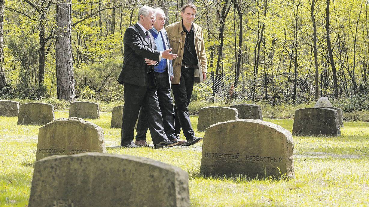 6. Mai 2015: Der damalige Bundespräsident Joachim Gauck (l.) besucht die Gedenkstätte des Stalag 326. | © Foto: Andreas Zobe