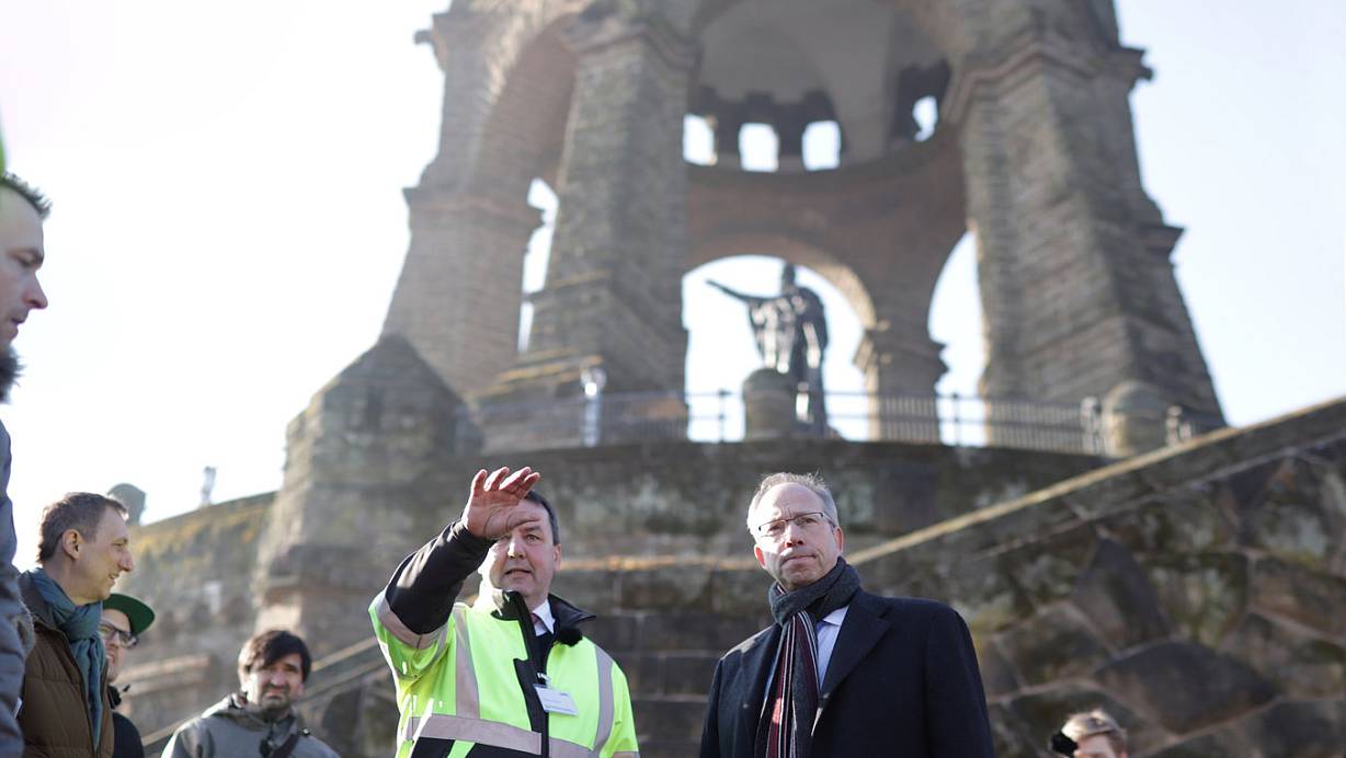 Er ist Prokurist und Bauleiter der Westfälisch-Lippischen Vermögensverwaltung (WLV), einer Tochtergesellschaft des LWL. 270 Kleinbohrpfähle seien 30 Meter tief in die Erde gebohrt worden, damit das Gebäude sicher steht. Probleme mit dem Erdreich habe es schon 1896 gegeben, kurze Zeit nach der Einweihung des Kaiser-Wilhelm-Denkmals. Dass die Sanierungsarbeiten überhaupt erfolgen mussten, ist eine Folge des Krieges. Teile der Ringterrasse waren 1946 eingestürzt, als die Briten aus Sicherheitsgründen die Stollen im Berg gesprengt hatten. "Jetzt wir der ursprüngliche Zustand wiederhergestellt", sagt Gundler.