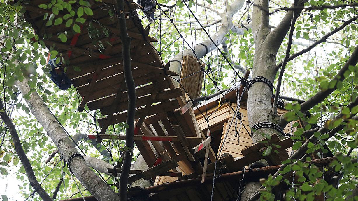 Auch bei dem tödlichen Absturz von Steffen M. am Mittwoch handelt es sich um einen Unfall. Nach Angaben der Staatsanwaltschaft gibt es keine Anhaltspunkte für ein Fremdverschulden. Der Mann sei nach Angaben einer Aktivistin aus rund 15 Metern in die Tiefe gestürzt, nachdem das Trittholz einer Hängebrücke zwischen zwei Baumhäusern nachgegeben habe, bevor er eine Seilsicherung einhängen konnte.