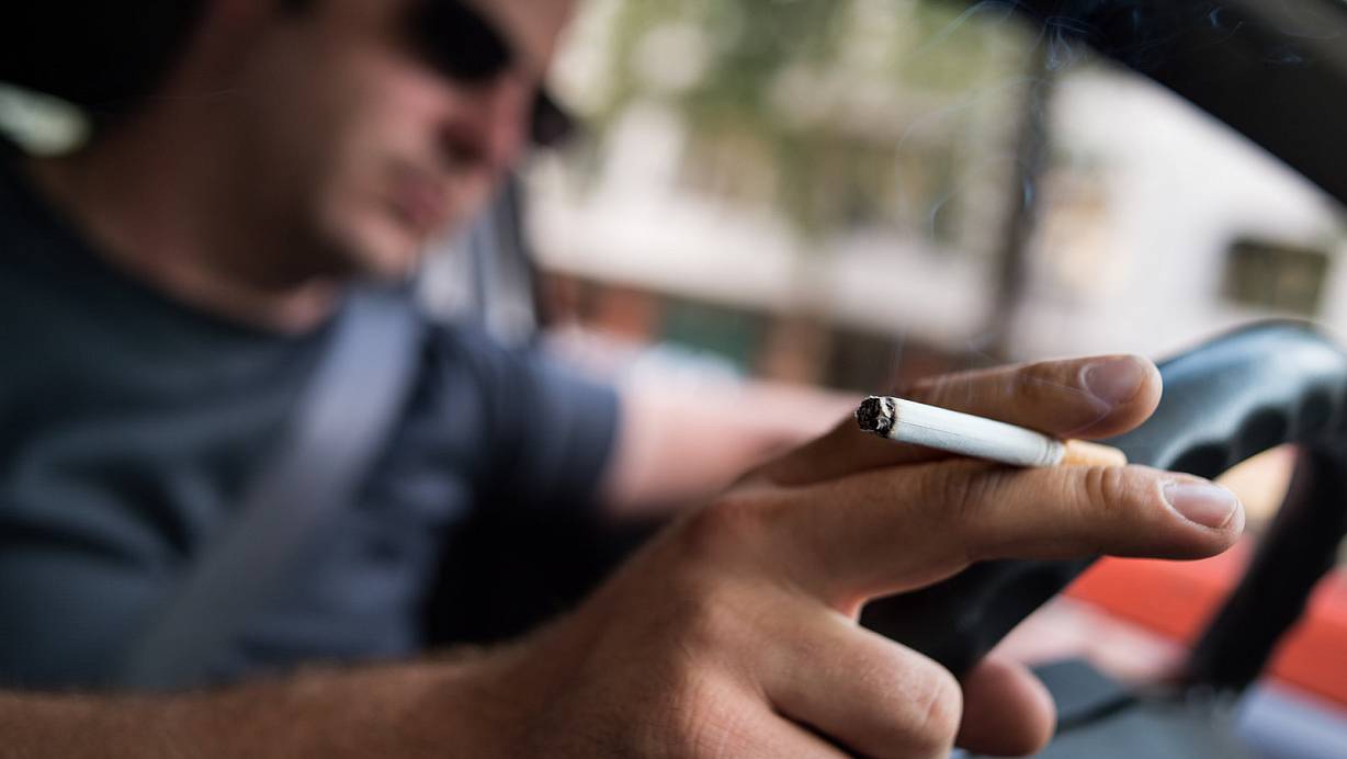 Ein Mann raucht in einem Auto eine Zigarette. | © picture alliance / dpa Themendienst