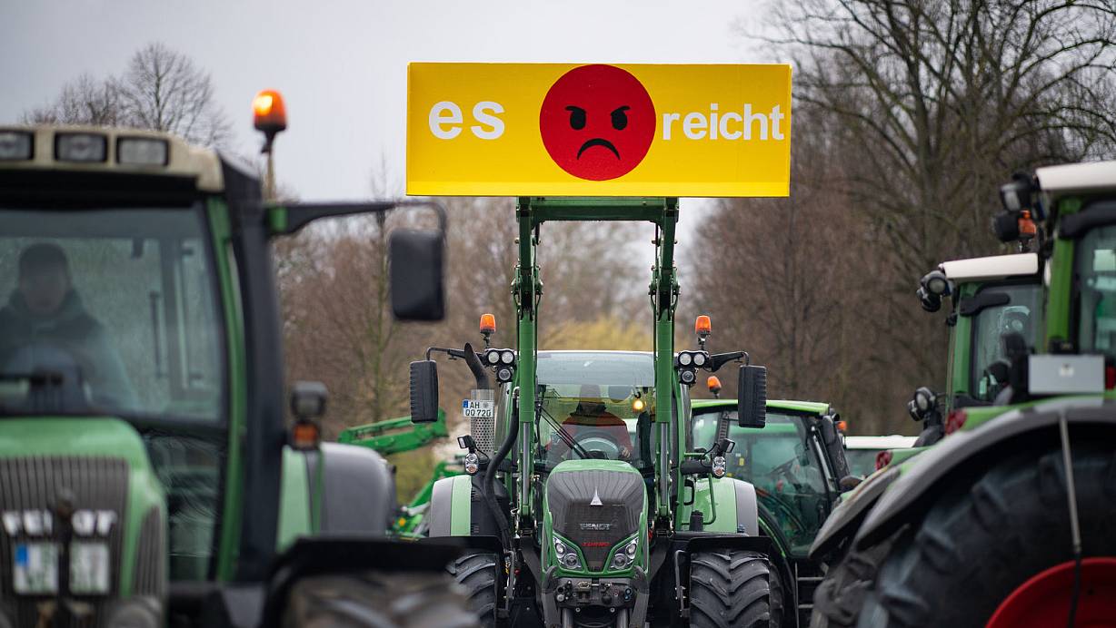 An einem Traktor hängt in Münster ein Transparent mit der Aufschrift: "Es reicht". Tausende Landwirte demonstrieren gegen die Verschärfung des Düngerechts. | © picture alliance/dpa
