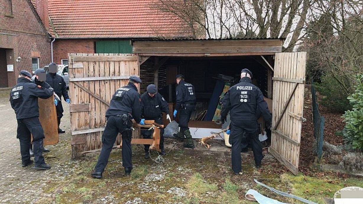 Durchsuchung: Die Polizei ermittelt auf dem Bauernhof in Hille. | © Stefanie Dullweber