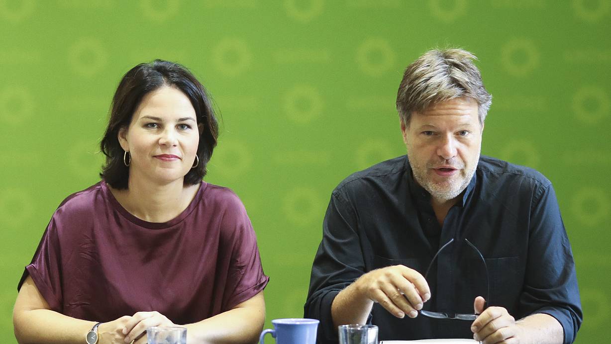 Stellen sich in Bielefeld zur Wiederwahl:  Annalena Baerbock und Robert Habeck. | © picture alliance/AP Photo