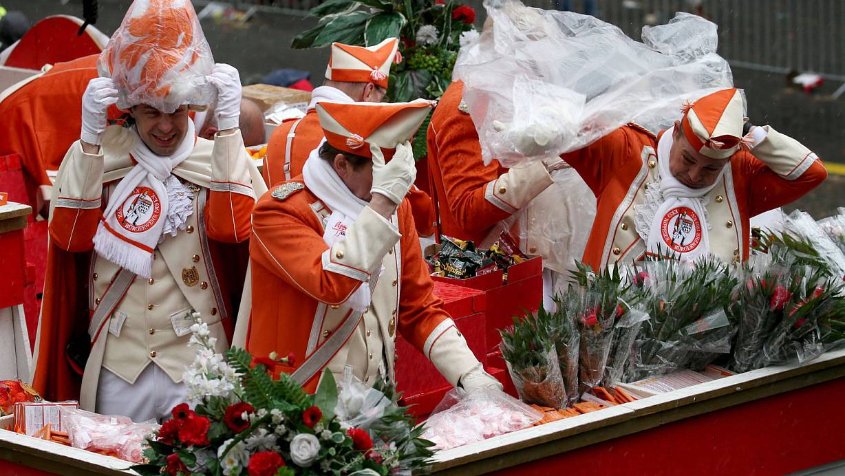 Kölner Karnevalisten mussten ihre Mützen und Kappen schon im vergangenen Jahr festhalten. | © picture alliance/dpa