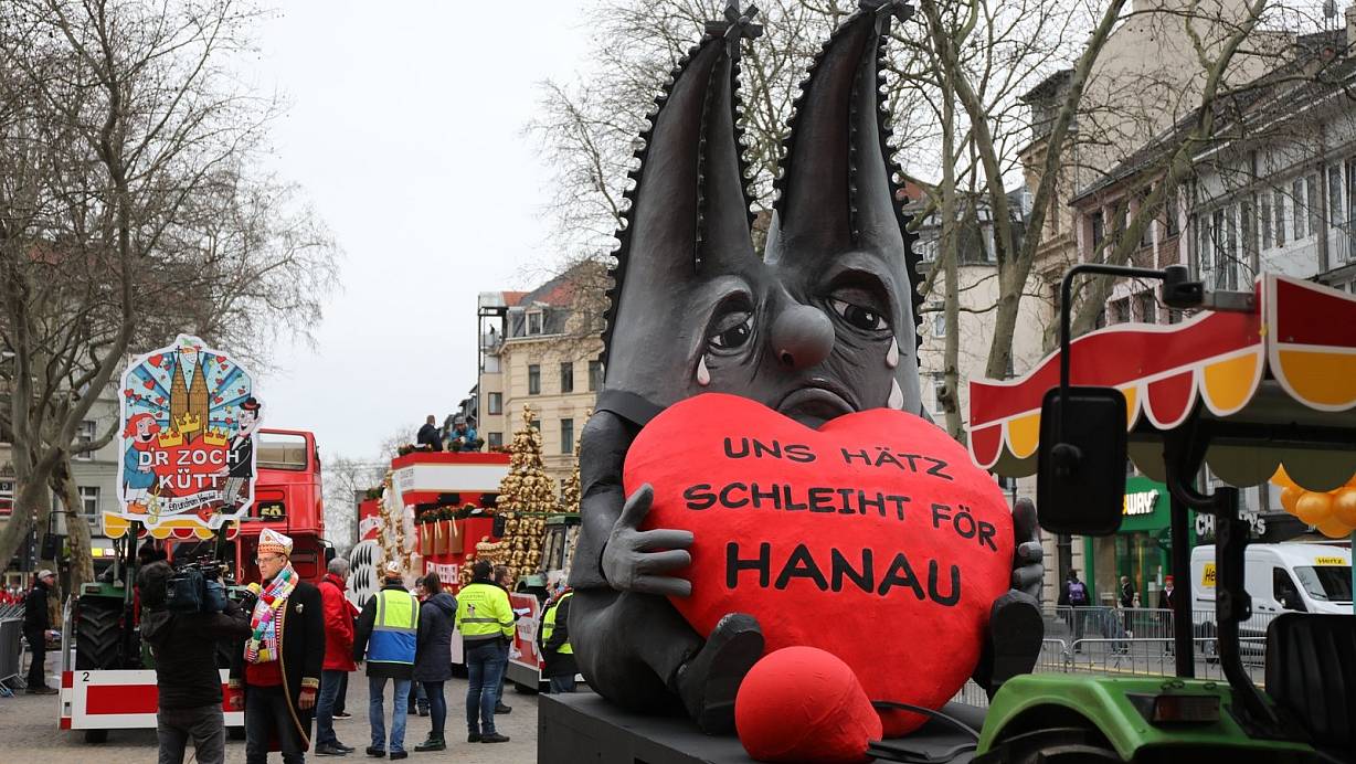 Die Karnevalshochburgen bezogen in den Rosenmontagszügen Position gegen Rechts. „Uns Hätz schleiht för Hanau" - unser Herz schlägt für Hanau, stand auf einem Kölner Mottowagen zu dem offensichtlich rechtsextremistischen Anschlag. Die Wagenbauer hatten ihren Dom mit hängenden Turmspitzen und Tränen dargestellt. „Karneval ist bunt, nicht braun!", sagte Zugleiter Holger Kirsch der Deutschen Presse-Agentur.