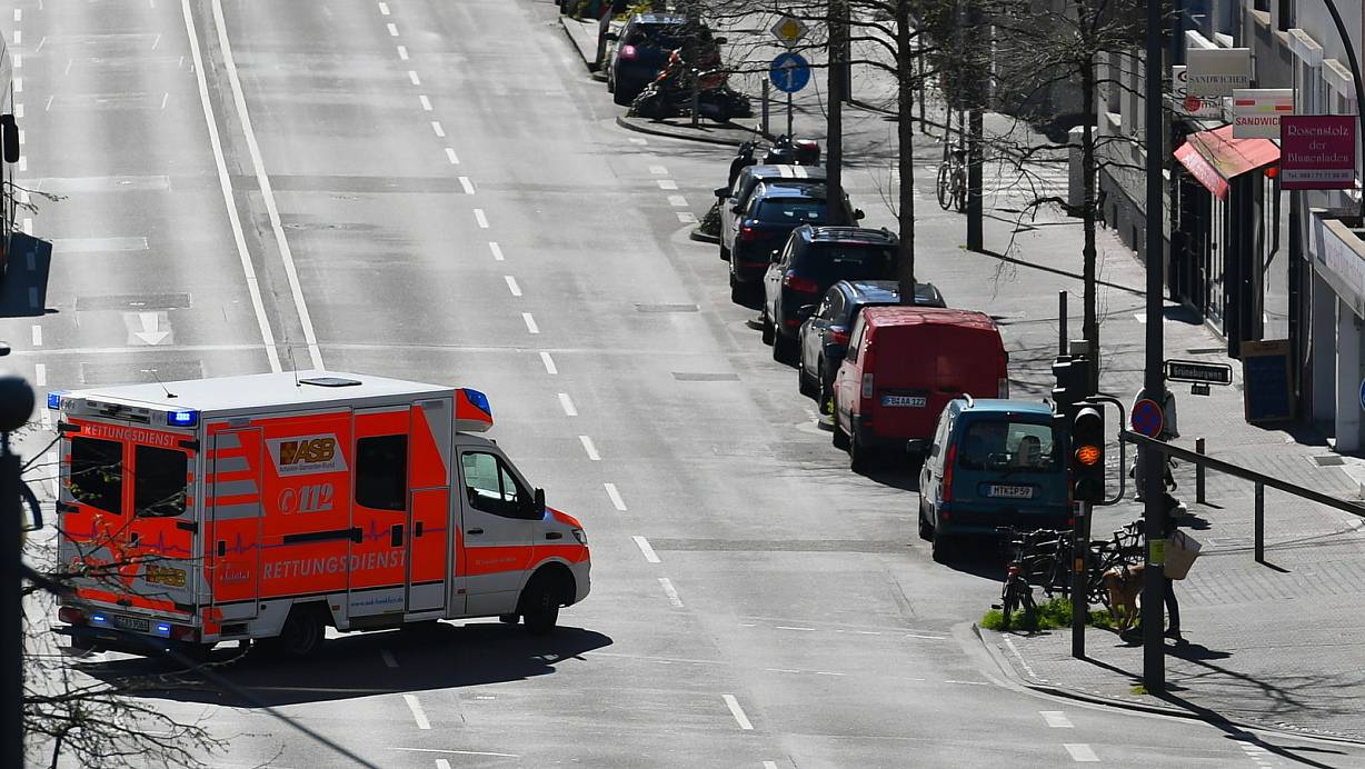 Allein auf weiter Flur: Ein Krankenwagen ist auf der menschenleeren Straße unterwegs. | © Picture Alliance