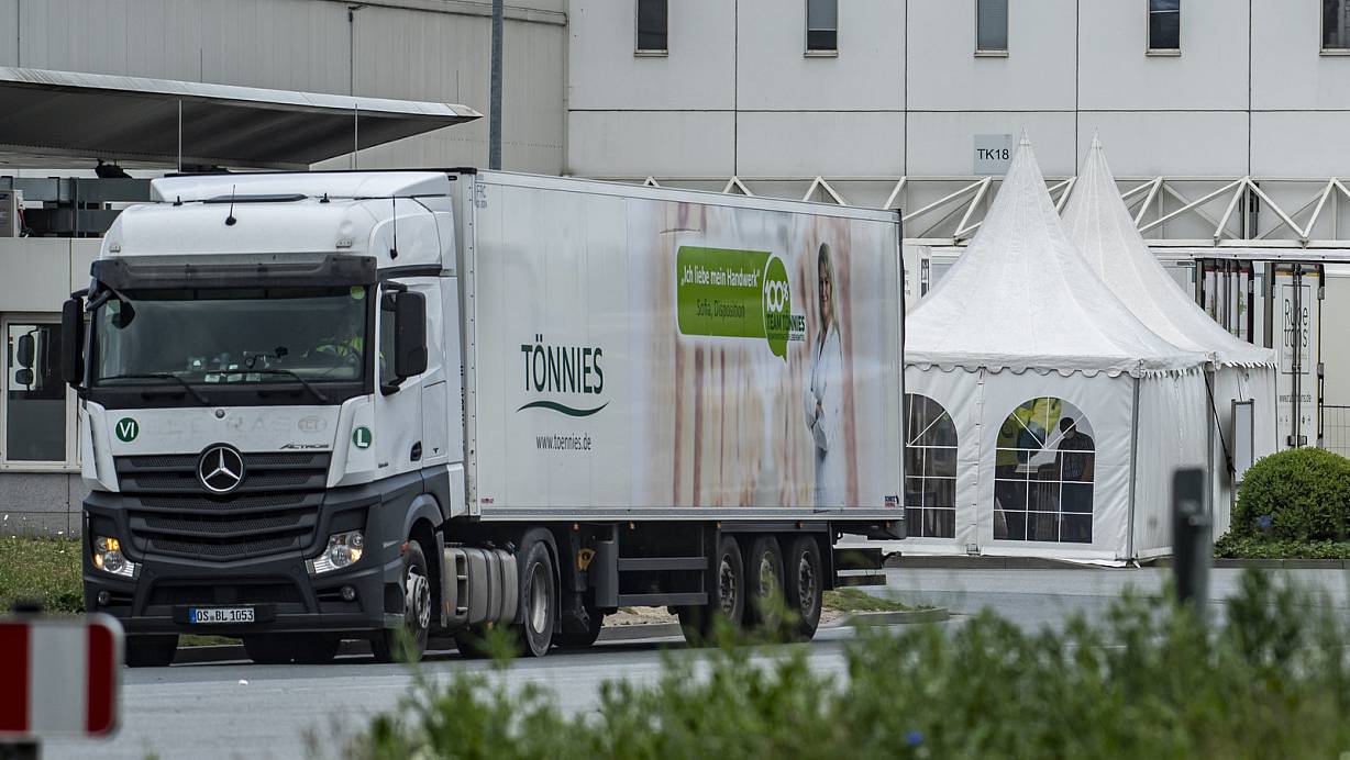 Vor dem Tönnies-Werk in Rheda-Wiedenbrück ist  für Zulieferer ein Zelt aufgestellt worden, in dem die Hygienemaßnahmen für die Lkw-Fahrer umgesetzt werden. | © dpa