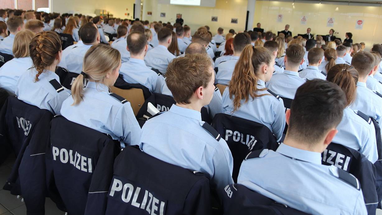 "Stressresistenz, Konfliktfähigkeit, Charakterfestigkeit": Polizeischüler im Bildungszentrum Stukenbrock. | © Sigurd Gringel