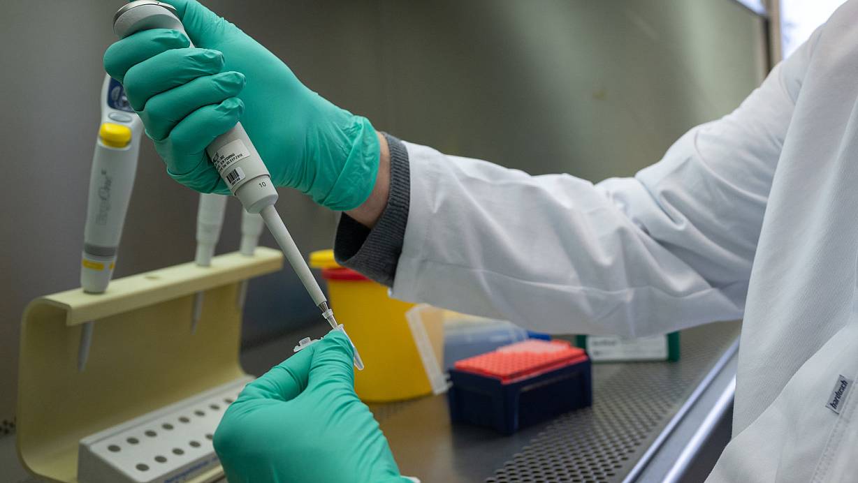 Ein Forscher zeigt, wie ein PCR-Test für die Analyse auf Mutationen des Coronavirus vorbereitet wird. | © picture alliance