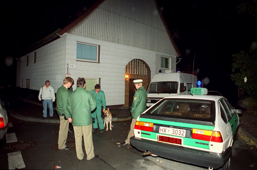 Es ist der 16. Oktober, an dem das Sondereinsatzkommando (SEK) Bielefeld zur Festnahme ins Dorf Bredenborn einrückt. An diesem Abend spielt die deutsche Fußball-Nationalmannschaft gegen Wales. Es geht um die Qualifikation für die Europameisterschaft 1992. „Wir haben die Halbzeit abgewartet", erinnert sich Einsatzleiter Erhard Küster. „Die Nachbarn hatten angedeutet, dass alle vor dem Fernseher sitzen würden." Mit einer Ramme verschaffen sich die Beamten Zutritt.
