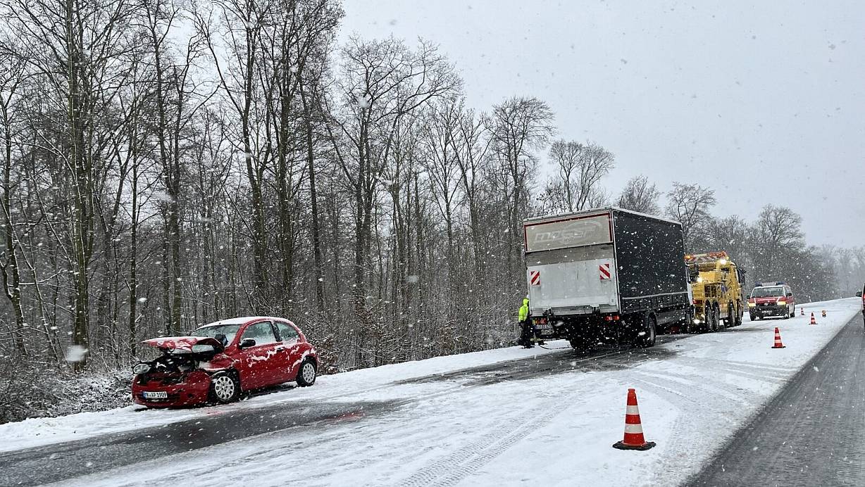 In Herdecke an der Ruhr kam ein mit 14 Schülern besetzter Bus ins Rutschen und prallte in einem Ampelmast. Ein Auto konnte nicht mehr bremsen und fuhr hinten in den Bus. Die Jugendlichen seien alle unverletzt geblieben, der 61-jährige Busfahrer erlitt leichte Verletzungen, teilte die Polizei mit.